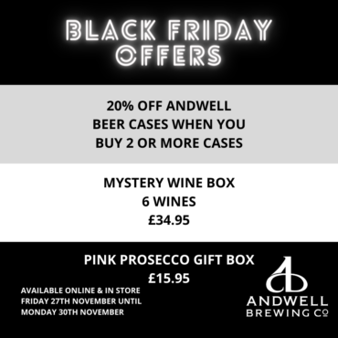 By adamk in Uncategorized / / 0 commentsRead moreFor Black Friday weekend only, we are offering some amazing deals… 20% OFF ANDWELL BEER CASES, WHEN YOU BUY 2 OR MORE CASES WITH COUPON: BLACKFRIDAY MYSTERY WINE CASE (6 WINES) ONLY £34.95 PINK PROSECCO GIFT…