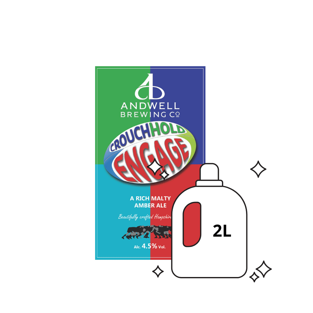 Our ‘scrummy’ Charity ale, is the perfect accompaniment to the Rugby. Brewed with a blend of pale ale, brown and crystal malt, with a gentle spicy hoppiness. Includes 2L re-usable container.