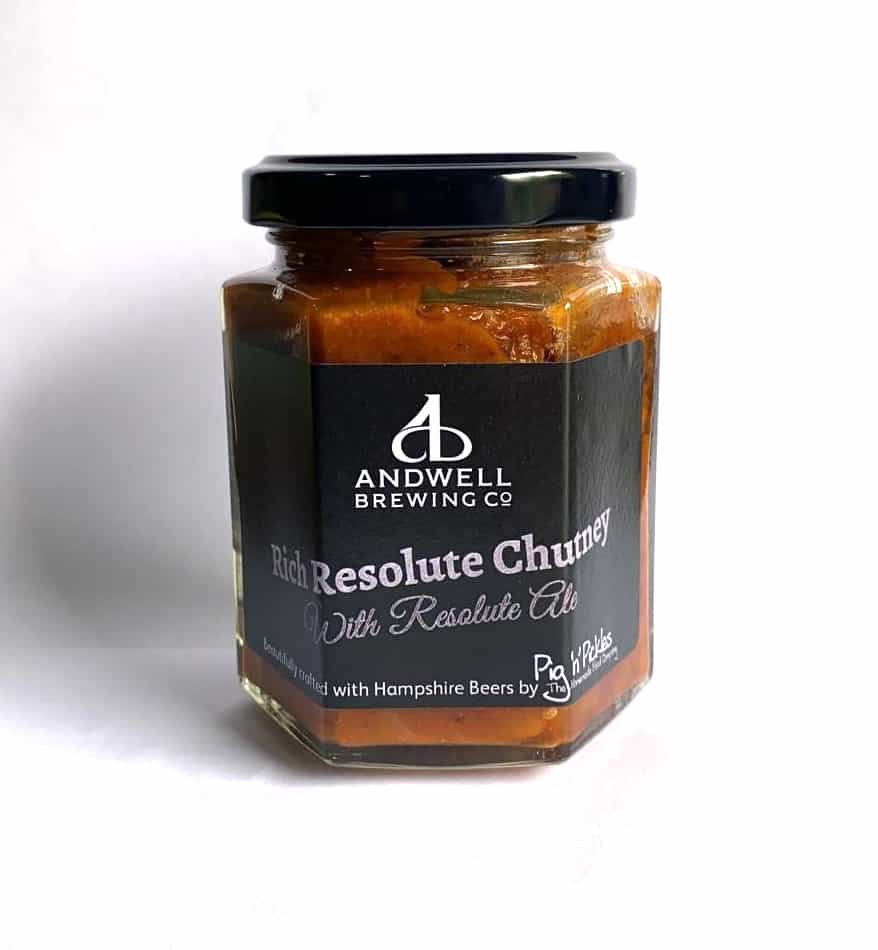 A traditional rich ale chutney, with our best bitter resolute. Enjoy with cheese, cold meats and pies.